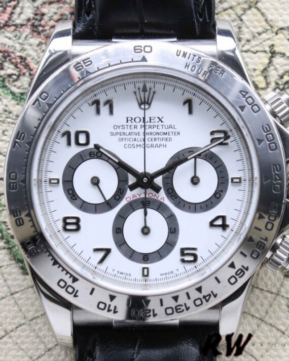 Rolex Daytona 16519 White Dial Black Leather strap 40mm Mens Replica Watch